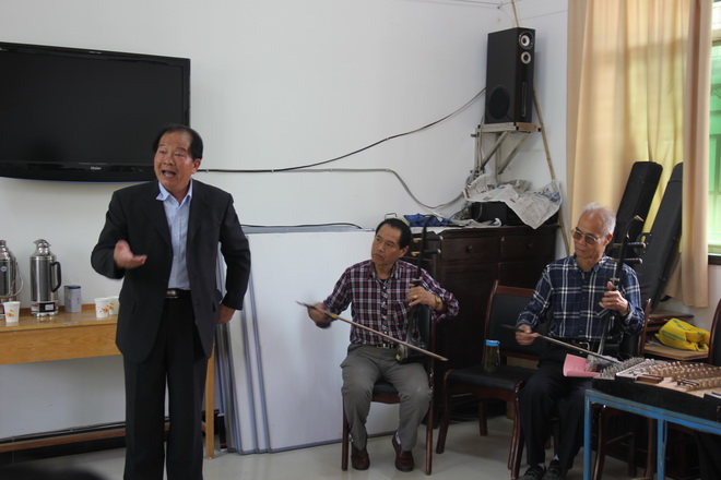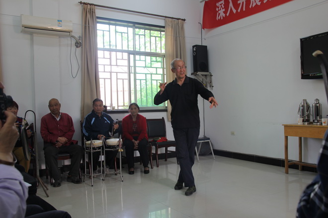 李主任一行來到我隊(duì),顧不上旅途的勞累,直奔正在積極準(zhǔn)備的秦腔演出現(xiàn)場。在看到秦“迷”們井然有序的安排和精心的準(zhǔn)備后,李主任非常滿意。隨后,秦“迷”們分別就自己拿手的秦腔節(jié)目做了匯報(bào)演出,國家一級(jí)演員任炳漢對每位秦“迷”唱腔、演功及伴奏做一一點(diǎn)評(píng),并肯定每位秦“迷”們對秦腔傳統(tǒng)藝術(shù)的熱愛,以及對傳統(tǒng)藝術(shù)傳承的執(zhí)著精神。對基層秦“迷”們能提供這樣的一個(gè)活動(dòng)場所的單位領(lǐng)導(dǎo)表示感謝。在大家的盛情邀請下,任炳漢先生進(jìn)行了示范表演。