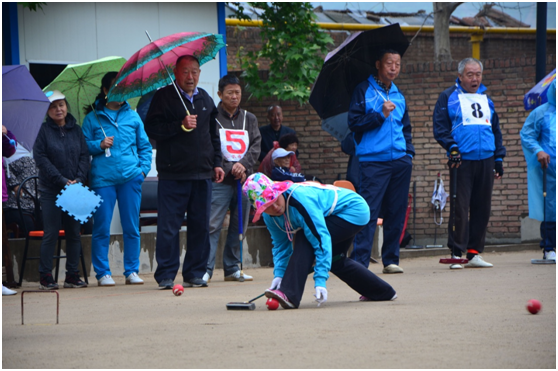 門球場上,隊(duì)員們個(gè)個(gè)精神煥發(fā),手握重槌,氣定神閑,揮桿對(duì)壘沉著冷靜,彎腰擊球也顯得身手矯健,擊球力度和角度都控制得非常精準(zhǔn),毫不遜色于年輕人。“過門”、“撞擊”、“閃擊”,充分展現(xiàn)了“壯心未與年俱老”的“夕陽紅”活力。