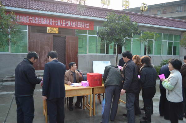 2011年11月18日上午10點(diǎn),街道集鎮(zhèn)和地質(zhì)六隊(duì)選區(qū)臨潼區(qū)第十七屆人民代表大會代表選舉在我隊(duì)統(tǒng)籌辦門前廣場舉行。