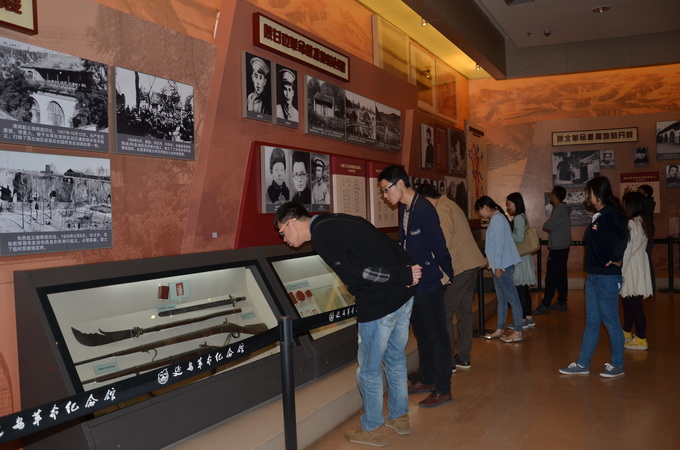 圖為團員青年在“楊家嶺革命舊址”參觀學習