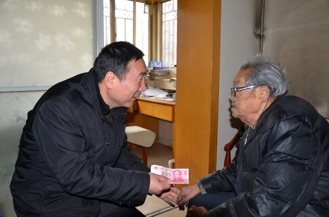 圖為工會主席夏元鵬慰問老干部、抗戰老兵農光謀