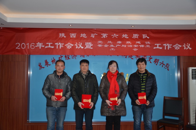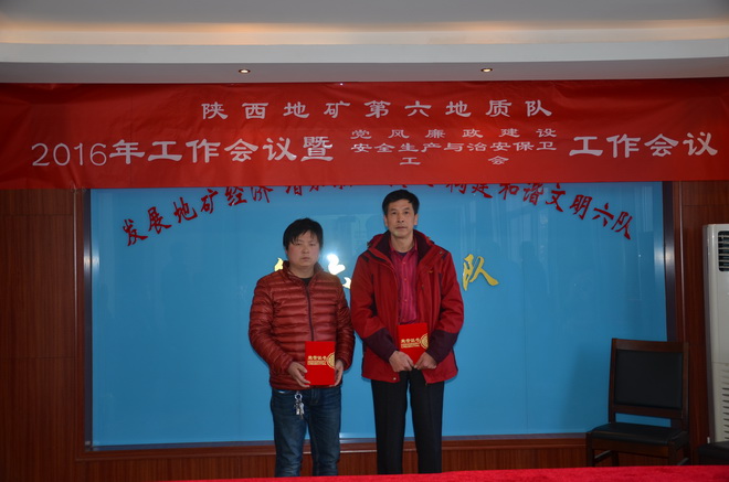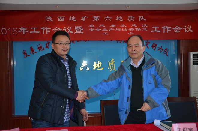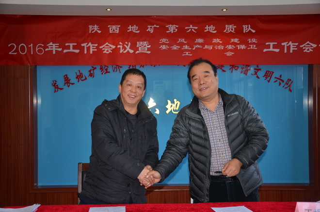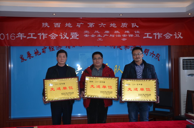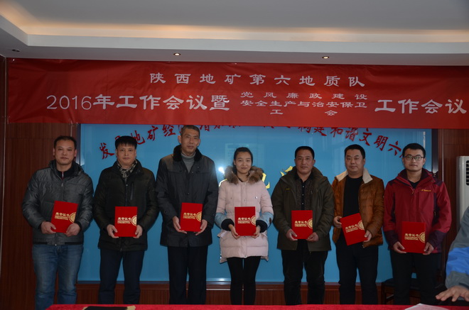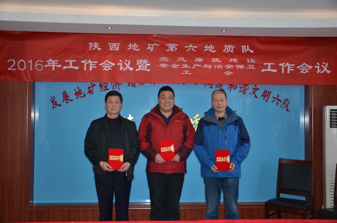 本次會議上,隊長王根寶代表隊與5個經營實體分別簽訂了2016年經營目標責任書,隊黨委書記王戰社代表隊與各部門、經營實體分別簽訂了2016年安全生產與治安保衛責任書。會議同時分別對2015年在創先爭優活動涌現出的先進單位、先進班子先進職工、優秀干部、突出貢獻者,對在“安康杯”競賽中涌現出的先進單位、先進班組、坑口、先進個人及在工會工作中涌現出的先進分會、先進分會小組、工會積極分子、優秀會員進行了表彰。